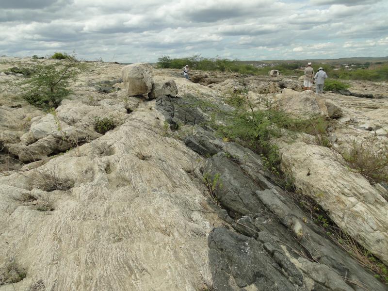 The Metanorthosite of Boqueirão geosite is composed of a great horizontal outcrop of whitish rocks, very peculiar, that remind us of a period of the formation of the earth in which they were commonly formed. One of the theories about the origin of the Moon, Earth's only natural satellite, assumes that it was formed by the collision of an asteroid that released a large mass of our planet, formed almost exclusively by anortosites and basalts that are equivalent to the rocky composition of the Moon in the present. Other peculiarities of the anorthosites are that they are formed almost like monominerals, that is to say, they possess only a mineral called plagioclase that presents / displays a high calcium content in its composition, that in the scientific jargon is denominated "content of anorthite", hence the name of the rock. Another curiosity to mention, is that the anorthosite is the only rock classified as ultramafic (more than 90% of black minerals) that, as an exception is simply white. This geosite is formed by folded metanortosites with concordant metric intercalations of metagabra (dark color). Metanorthosites are grayish-whitish, hololeucocratic, unequigranular with medium to coarse granulation. The metagabra occur as metrical dikes / sills interspersed with metanortosites. These rocks are dark gray, slightly greenish, melanocratic, foliar, unequigranular with fine to medium granulation in their interstices. This geosite is part of the Cariri Paraibano Geopark proposal (Lages et al., 2018).