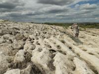 Afloramento horizontal do Metanortosito do Boqueirão, formando um micro-relevo pseudocárstico, com inúmeras...