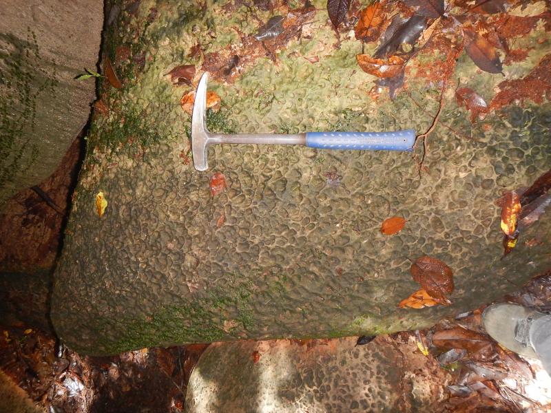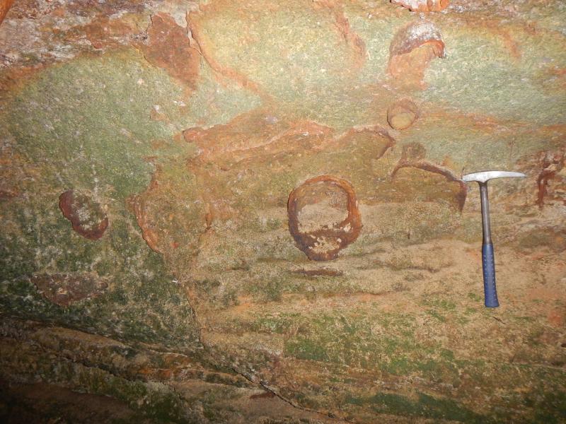 O teto das grutas é um arenito bem cimentado, enquanto o solo é um arenito friável intensamente bioturbado.