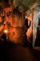 | Com cerca de 450 metros de desenvolvimento, a parte da caverna Monjolinho possível de ser visitada é seca. No entanto, dessa parte seca ouve-se o barulho do turbulento ribeirão Monjolinho, que atravessa a caverna pelo seu nível inferior, não acessível. O barulho das águas turbulentas gera no nível superior um interessante efeito acústico, o que faz com que confere uma sensação de magia à visita. No geral, é uma caverna pouco ornamentada. Porém, os poucos espeleotemas são belos, destacando-se, dentre eles, uma espetacular coluna, conhecida como “Gigante do Monjolinho”. |