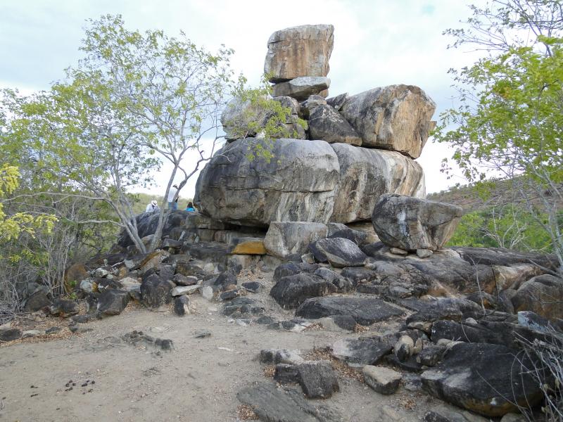 | The Ecological Park of Stone of the Bell, as its name indicates, is a park created by Piranhas prefecture, through Municipal Law no. 18/2009, of November 24, 2009, with an area of 21.7 hectares, whose purpose is the environmental protection of the abiotic and biotic elements that make up the area, conducting environmental education and scientific studies. In addition to the preserved caatinga vegetation, the main attraction of the park is a distinctive geological monument composed of a residual relief in granite rocks of the Curralinho Suite, which is characterized as a castle koppie formed by polyhedral blocks stacked in a castellated way, which present vertices and sharp edges. This castle koppie is the result of the preservation of the initial stage of the diaclasing of orthogonal fractures sliced by the sub-horizontal relief fractures generated in more or less regular dimensions. At the top of the monument is an isolated block, which is hammered with a metallic sound similar to that of a bell, which gave the name to the park. It is a phonolith, corresponding hipabissal rock effusive of the alkaline syenite with feldspar. This geological monument was visited and admired by engineer Theodoro Sampaio and geologist Orville Derby on August 23, 1879, during the famous expedition of the São Francisco River and Chapada Diamantina, promoted by the Hydraulic Commission of the Empire, described in the travel diary of Sampaio. In his account of the Stone of the Bell, where an illustration appears, he refers to "a heap of large granite blocks, forming an isolated group in the middle of the caatinga and looking like a bastion or tower in ruins. In the upper part, in an equilibrium that seems unstable, it rises wedge-shaped, immediately resting on thinner flakes of a rock, which is a very hard phonolite, a block two to three meters high, simulating the crowning of an old monument. Shocked by the hammer, those stone splinters emit a sound like that of the brass sound with a grave but low intensity timbre, from which comes the name given to it by the cowboys, locals, and the curiosity that awakens in those who for the first time visits Piranhas ". This geosite is part of the proposal of the São Francisco Canyon Geopark. (Ferreira et al., 2018). |