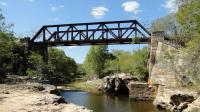 | The Geodiversity Site Iron Bridge of Talhado Creek is a set of silicified sandstone outcrops of the Tacaratu Formation, located under an old bridge of the historic Paulo Afonso Railroad, which was inaugurated in 1883. For the construction of the support structure of the bridge was used stone blocks carved in the mentioned sandstones, in a beautiful well preserved exemplar of works of art (realized by craftsmen) of the engineering of century XIX. On the banks of the Talhado Creek, downstream of the bridge, are large fractured blocks of Tacaratu sandstone with conglomeratic facies, as well as sedimentary structures such as plane-parallel and cross-stratified laminations. This site is part of the proposal of the São Francisco Canyon Geopark. (Ferreira et al., 2018). |
