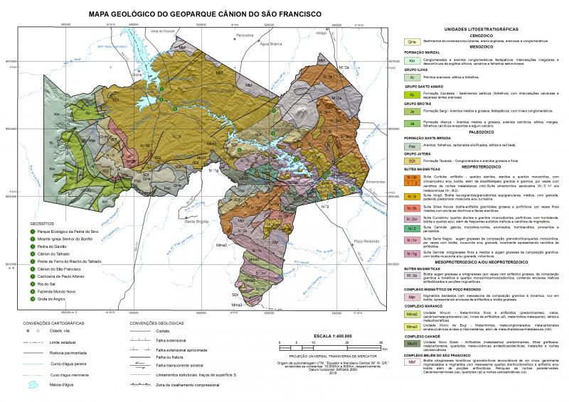 | AB’SABER, A.N.1969. Participação das superfícies aplainadas nas paisagens do Nordeste Brasileiro. Instituto de Geografia / USP, São Paulo, (Geomorfologia, 19). AB’SABER, A.N. 1974. O domínio morfoclimático semi-árido das caatingas brasileiras. Instituto de Geografia / USP, São Paulo, (Geomorfologia, 43). AB’SÁBER, A. N. 1997. O Homem dos Terraços de Xingó. Relatório de visita e pesquisas na área de Xingó (nov. de 1997). Projeto financiado pela CHESF. Doc. n. 6. Projeto Arqueológico Xingó. Universidade Federal de Sergipe. BUENO, G.V.; AZAMBUJA, N.C.; SZATMARI, P. et al. 1994. Projeto Tucano: análises de bacias sedimentares. Relatório interno. Salvador: PETROBRAS/DEXBA/ CENPES. COSTA, I. P., MILHOMEN P.S. & CARVALHO M. S. S. 2003. Bacias Sedimentares Brasileiras: Bacia de Jatobá. Fundação Paleontológica Phoenix. Ano 5. n. 53. FERREIRA, Rogério Valença; MARIANO, Gorki; LIMA, Rochana de Andrade; GUIMARÃES, Thaís de Oliveira; SANTOS, Edjane Maria dos. Projeto Geoparques do Brasil: Geoparque Cânion do São Francisco - Proposta. Recife: CPRM, 2018. 52 p. Disponível em: http://rigeo.cprm.gov.br/jspui/handle/doc/20725. Acesso em 04/11/2020. MABESSONE, J.M. 1978. Panorama Geomorfológico do Nordeste Brasileiro. São Paulo. (Geomorfologia, 56). MEDEIROS, V. C. 2000. Aracaju NE: folha SC.24-X estados da Paraíba, Pernambuco, Alagoas, Sergipe e Bahia. Escala 1:500.000. Brasília: CPRM. 1 CD-ROM; mapas. Programa Levantamentos Geológicos Básicos do Brasil - PLGB. MILANI, E. J. 1985. Tectônica cisalhante na evolução do rifte Recôncavo-Tucano-Jatobá. Revista Brasileira de Geociência 15(4): 287-292. SANTOS, C. F.; CUPERTINO, J. A.; BRAGA, J. A. E. 1990. Síntese sobre a geologia das bacias do Recôncavo, Tucano e Jatobá. In: Raja Gabaglia, G. P. & Milani, E. J. (eds.), Origem e evolução das bacias sedimentares. PETROBRAS, Rio de Janeiro, pp. 235-266. |