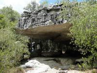 | World Farm New, where the homonymous geosite is located, is a private property. In the area, an infrastructure was set up for the tourism of nature appreciation, which has several attractions related to geology and the caatinga biome. An inn and restaurant were built next to a natural viewpoint for appreciation of the beautiful landscape of the São Francisco Canyon, which in this section cuts the rocks of the Tacaratu Formation, in a segment of the Tucano-Jatobá Basin, which is flooded with the waters of the Hydroelectric of Xingó. In addition to the viewpoint, the farm has a set of residual ruins of the ruiniform type, carved in the sandstones of the Tacaratu Formation, which in this area presents predominantly coarse sandstone facies with conglomerate levels, with several outcrops showing sedimentary structures such as plane-parallel stratifications, crusades and fish bones. Also can be seen several hollows in the form of furnas, excavated in the sandstone by erosive processes. These cavities were used as shelter by the prehistoric peoples who lived in the region, who left their marks there through rock art and more recently by the cangaceiros that circulated there, notably those of the famous Lampião group. This geosite is part of the proposal of the São Francisco Canyon Geopark. (Ferreira et al., 2018). |
