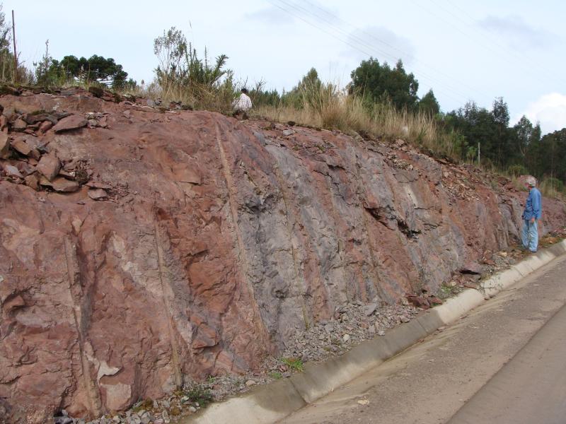 | The site of the geodiversity rocks Ácidas de Cambará is an outcrop in the form of road cutting and small slabs in the city of Cambará do Sul. The outcrop is located in an urban area at the beginning of the stretch of RS-020 that connects the city to the municipality of São José dos Ausentes. The site is formed by beautiful exposures of acidic volcanic rocks (Serra Geral Formation – Lower Cretaceous) where it is possible to visualize the same outcrop in the form of cutting and plant that forms a rare set of three dimensions. In this way, lava flow structures are visualized in detail through bands of different colors (light gray, dark gray and reddish) or by differential change that highlights folds of centimetric dimensions. Cambará Acid Rocks present scientific and pedagogical interests related to volcanic processes and is classified as a site of geodiversity of regional/local relevance. |