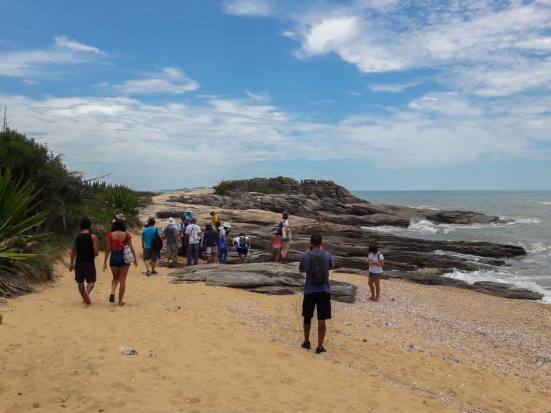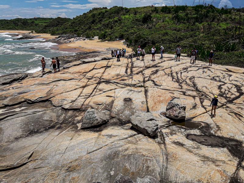 Localizada aproximadamente a 15 km do centro de Rio das Ostras, a Praia do Mar do Norte é uma das maiores da região. A natureza ali é muito preservada. Com um mar muito azul, onde tartarugas podem ser avistadas, chamam a atenção os costões rochosos e um pequeno corpo d’água que chega à praia. Seus maiores frequentadores são moradores e praticantes de mergulho e pesca, que encontram grande variedade de peixes. Em uma caminhada desde o Tayra Eco-parque até a praia do Mar do Norte, podemos conhecer um pouco das estruturas do passado que moldam a atual paisagem. No alto, em um mirante natural de onde se tem uma bela vista de toda a região, podem-se ver nos barrancos os sedimentos da Formação Barreiras que formam paleofalésias, indicando a variação do nível do mar no passado recente, há 5 mil anos aproximadamente. Nos costões, podem ser observadas rochas metamórficas (ortognaisses e orto-anfibolitos) com aproximadamente 2 bilhões de anos, com estruturas que registram a colisão que formou o Supercontinente Gondwana há cerca de 500 milhões de anos. Cortando estas rochas, são observados diques de diabásio, rochas ígneas subvulcânicas, com cerca de 130 milhões de anos. Verifica-se, também, um tipo especial de sedimentação na praia composta, principalmente, por areia grossa a muito grossa ao longo das enseadas e cascalhos próximos aos costões, evidenciando a área-fonte desses sedimentos. Fraturas em diferentes direções despertam a curiosidade dos visitantes e servem para interpretar os esforços a que estas rochas foram submetidas a grandes profundidades, onde se formaram, e a resposta ao alívio de pressão ao chegarem à superfície após milhões de anos. Fonte da descrição: https://www.geoparquecostoeselagunas.com/rio-das-ostras |