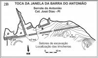 O sítio tem orientação SE / NW, com abertura para NE, estando localizado numa área denominada Serrote do Antonião, na forma de um maciço calcário com uma extensão aproximada de 600 m no sentido N/S e 450 m no sentido E/W e área de 0,3 Km². A Toca, em si, tem uma largura de 180 m e uma profundidade de 28 m com material de preenchimento ou depositado que atinge uma espessura de cerca de 8 m ocupando uma área de 750 m². Indícios de paleocirculação intracárstica está representada pelos inúmeros seixos alóctones de gnaisse e quartzitos, predominantemente. Aqui foram encontradas 1918 peças líticas, das quais 394 sobre seixos e 271 de outros materias; 356 lascas, 1.906 fragmentos de ossos de megafauna. Há ainda um número em torno de 479 fragmentos de seixos não identificados. As matérias primas utilizadas, mais frequentemente, são quartzito, quartzo, arenito, sílex e outras rochas. |