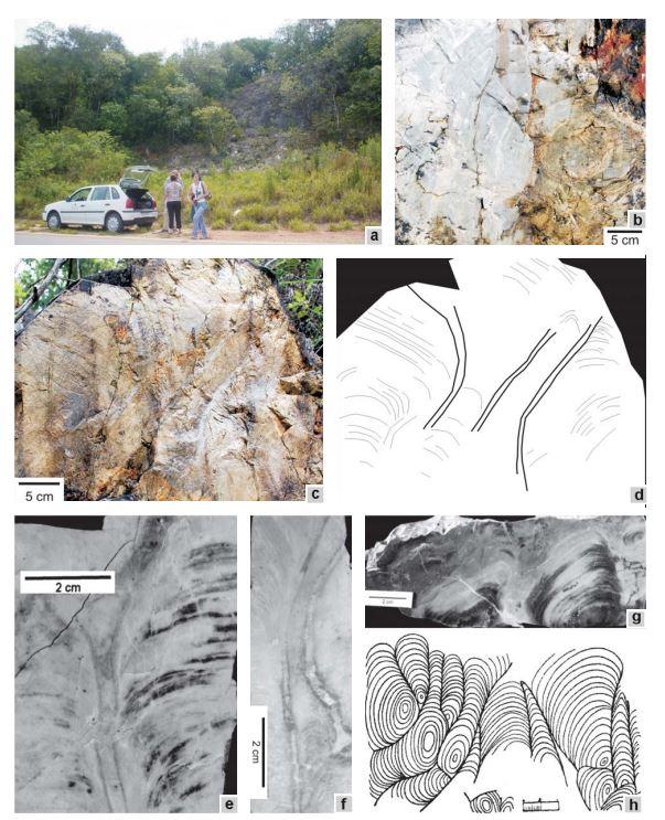 | Stromatolites are biosedimentary structures that are found from the Archean to the present and which reached their greatest abundance in the Proterozoic (2,500 to 1,000 million years ago). In Brazil they occur in various Proterozoic units, principally on the São Francisco Craton and in associated fold belts, as well as in the Paraguay and Ribeira belts. In the Itaiacoca Group (Ribeira Belt) in the region of Nova Campina and Itapeva, southern São Paulo, they were the first Precambrian fossils to be described in Brazil and in South America in 1944 by Fernando Flávio Marques de Almeida. They remain the oldest fossils known in the state of São Paulo. In this region there are nine occurrences of stromatolites, of which the three most representative of the diverse forms present in the Itaiacoca Group were selected for description, one being designated as the principal outcrop and two others as reference outcrops. None of the stromatolite localities is presently protected. On the contrary, practically all are situated in areas of active mining for limestone and dolostone or in areas that have been requested for future exploitation. Some of these áreas are in danger of degradation or even of disappearing. Efforts to preserve them, however, are being made in partnership with the prefecture of Nova Campina and the company that owns the land where the principal outcrop is located in order to take the necessary steps to ensure conservation and maintenance of this site. |