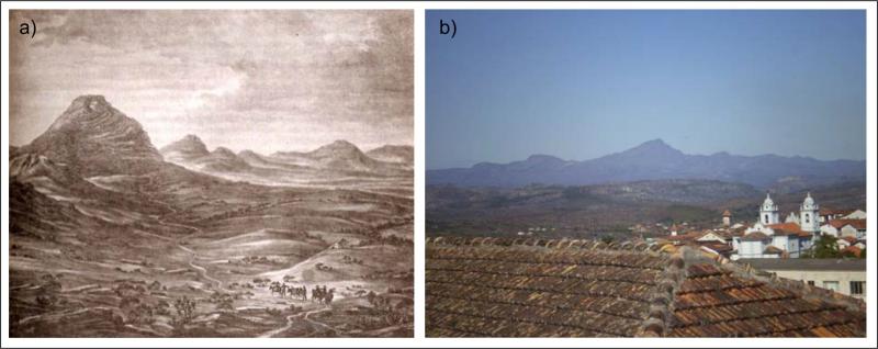 | The 2,060 m high Itambé Peak, located in the Espinhaço Range, north of the of Serro town (State of Minas Gerais), represents an impressive residual relief of the early cretaceous Gondwana erosion surface, regionally recorded along this range. The region shows precambrian rocks of the Basement Complex, Serra da Serpentina Group and Espinhaço Supergroup. Rocks of this last sequence, of paleo to mesoproterozoic age, occur in the peak area, where mainly metaconglomerates and quartzites of the Sopa-Brumadinho and Galho do Miguel formations are recognized. Colluvial deposits located in the vicinity of diamondiferous conglomerates have already been mined. The peak has historical importance because it has always been considered something of a natural guide for travelers and miners of the diamond mining region of Diamantina, such magnificence in their landscape and interesting morphology. The native vegetation cover consists of altitude grass fields and “cerrados”; in the valleys there are fertile soils where exuberant rain forests occur. The region is environmentally protected since the creation of the Pico do Itambé State Park (1998), embracing the municipalities of Serro, Santo Antônio do Itambé and Serra Azul de Minas, which proposition has been strongly supported by the surrounding communities. (Chaves et al. 2013) |