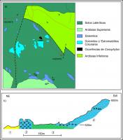 | Acesso: | O geossítio de Cabeludo localiza-se a cerca de 1 km da Vila de Cabeludo, a qual pertence ao município de Vazante, que se situa na porção noroeste do Estado de Minas Gerais (Fig. 1). O acesso pode ser feito a partir da cidade de Vazante em direção a Vazamor situado ao norte ou a partir da cidade de Paracatu em direção ao sul, por estradas de terra trafegáveis em qualquer período do ano. As coordenadas geográficas do sítio são: 17,72583333 S; 46,75888889 W. |