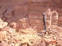 It represents the association of interstratified mudstone/sandstone lithofacies of the Caboclo formation, Chapada Diamantina group. Regionally during the deposition of the Caboclo formation, marine sedimentation, predominantly carbonates, there were several variations, rises and relative falls in sea level. This mudstone/sandstone unit was deposited above basal carbonates, algal laminite, calcarenite and columnar stromatolite.