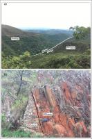 Figura 04 – a) Vale onde está encaixada a zona da Falha de Cata Branca; b) detalhe do contato tectônico entre os... |