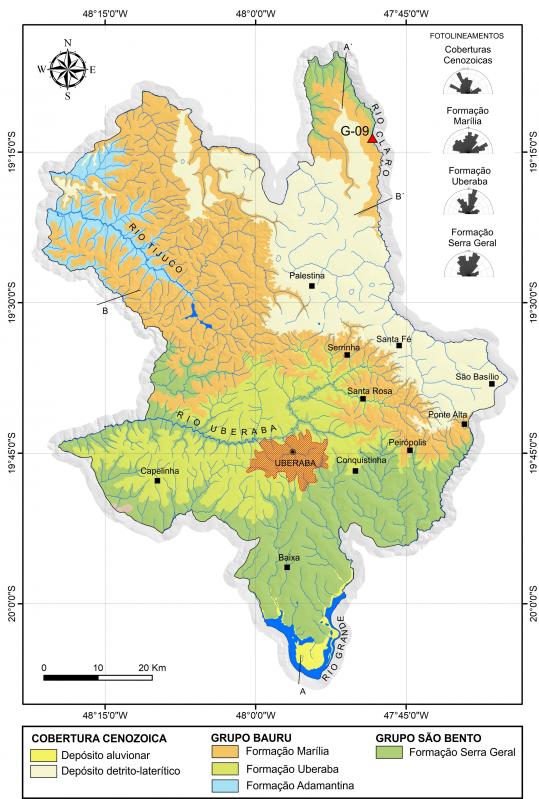 | Batezelli, A. 2003. Análise da sedimentação cretácea no Triângulo Mineiro e sua correlação com áreas adjacentes. Tese de Doutorado. Instituto de Geociências e Ciências Exatas, UNESP, Rio claro, 195p. Cavalheiro, L.; Wagner, T.; Steinig, S.; Bottini, C.; Dummann, W.; Esegbue, O.; Gambacorta, G.; Giraldo-Gómez, V.; Farnsworth, A.; Flögel, S.; Hofmann, P.; Lunt, D.J.; Rethemeyer, J.; Torricelli, S.; Erba, E. 2021. Impact of global cooling on Early Cretaceous high pCO2 world during the Weissert Event. Nature Communications, 12: 5411. doi.org/10.1038/s41467-021-25706-0. Ernesto, M.; Raposo, M.I.B.; Marques, L.S.; Renne, P.R.; Diogo, L.A.; DE Min, A. 1999. Paleomagnetism, geochemistry and 40Ar/39Ar dating of the North-eastern Paraná magmatic province: tectonic implications. Journal of Geodynamics, 28: 321-340. Fernandes L.A.; Ribeiro C.M.M. 2015. Evolution and palaeoenvironment of the Bauru Basin (Upper Cretaceous, Brazil). Journal of South America Earth Sciences, 61:71-90. Macedo, D.; Ribeiro, A.G. 2002. Ecoturismo na Cachoeira da fumaça (Rio claro) – Nova Ponte/Uberaba (MG). Caminhos da Geografia. Instituto de Geografia, Universidade Federal de Uberlândia, p. 63-76. Marques, L.S.; ERNESTO, M. 2004. O magmatismo toleítico da Bacia do Paraná. In: Geologia do continente Sul- Americano: Evolução da obra de Fernando Marques de Almeida. Capítulo XV, Ed. Beca, São Paulo, Brasil, p.245-263. Milani, E.J. 1997. Evolução tectono-estratigráfica da Bacia do Paraná e seu relacionamento com a geodinâmica Fanerozoica do Gondwana Sul-Ocidental. Tese de Doutorado em Geociências, Instituto de Geociências, Universidade Federal do Rio Grande do Sul, Porto Alegre, 225p. Petri, S.; Fúlfaro, J.V. 1983. Geologia do Brasil. São Paulo. T.A. Queiroz – USP. 631p. Netto, F.M.L. 2015. Identificação dos locais de interesse geomorfológico do rio claro, Triângulo Mineiro. Dissertação de Mestrado. Instituto de Geografia, Universidade Federal de Uberlândia. 97p. Oliveira, P.C.A.; Netto, L.; Rodrigues, S.C. 2016. Identificação dos locais de interesse geomorfológico do rio Claro – Triângulo Mineiro. In: Anais do 11º Simpósio Nacional de Geomorfologia. Maringa-PR, p. 1-7. Quintão, D.A.; Caxito, F.A.; Karfunkel, J.; Vieira, F.R.; Seer, H.J.; Moraes, L.C.; Ribeiro, L.C.B.; Pedrosa-Soares, A.C. 2017. Geochemistry and sedimentar provenance of the Upper Cretaceous Uberaba Formation (Southeastern Triângulo Mineiro, MG, Brazil). Brazilian Journal of Geology, 47(2): 159-182. Scotese, C.R., 2014. Atlas of Plate Tectonic Reconstructions (Mollweide Projection), Volumes 1-6, PALEOMAP Project PaleoAtlas for ArcGIS, PALEOMAP Project, Evanston, IL. Seer, H.J.; Moraes, L.C. 2017. Geologia Regional do Triângulo Mineiro. Projeto Triângulo Mineiro. Programa Mapeamento Geológico do Estado de Minas Gerais. CODEMIG, Belo Horizonte, 123p. Thiede, D.S.; Vasconcelos, P.M. 2010. Paraná flood basalts: Rapid extrusion hypothesis confirmed by new 40Ar/39Ar results. Geology, 38(8): 747-750. |