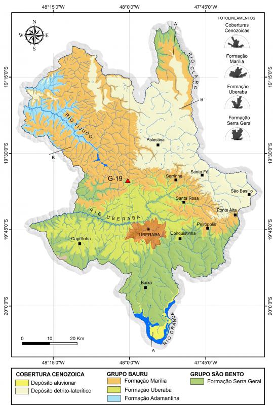 Fig. 4 - Mapa geológico simplificado da Bacia Bauru com a localização do município de Uberaba (Compilado de... |