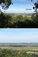 | The Mirante da Serra da Galga geosite is also known as Morro da Antena. From the viewpoint it is possible to see the city of Uberaba on the horizon and also the geomorphological domains of the region such as the scarps of the mountain range, hills, valleys and plantations. It is the top of the Marília Formation, where the rock appears weathered and partially covered by a soil constituted, in great part, by pisolitic ferruginous nodules (typical Pétric Plintossolos), evidencing the generation of Laterite Formations, clearly associated with the South American erosion surface. |