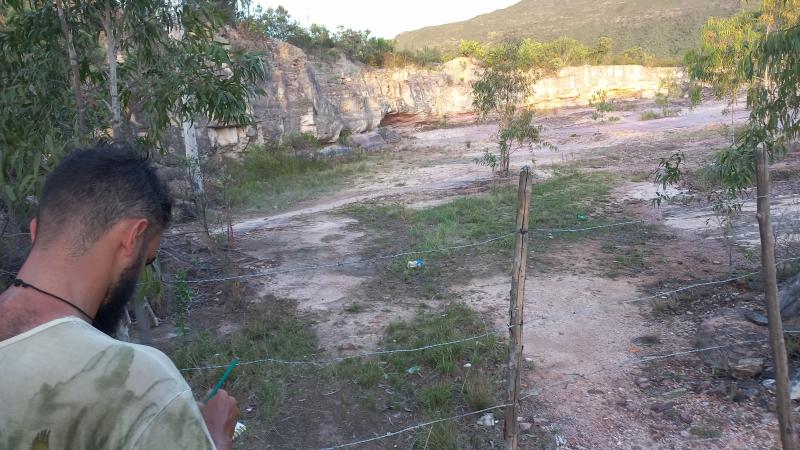 Pedreira com cerca de 200 m² de área, com exposições da Formação Açuruá e fácies dela, com a descrita ardósia (siltito) vermelha com intercalações com arenito amraelo-esbranquiçado.