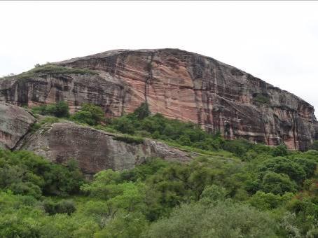 | The Pedra Pintada is a hill testimony with approximate height of 225 meters. The geosite is 38 km from the village of Camaquã Mines running through the RS-625 sense Santa da Boa Vista. The hill is formed by sandstone rocks of wind origin training Pedra Pintada, belonging to the group Guaritas, would be old dunes formed in desert environment. The name Pedra Pintada is based on the variations of colors cream, beige and red, which is observed on the East face, which mark the sedimentary structures that are large crusades laminates Paim et al., (2010). The cerro has your elevation and form originated by different geological phenomena, as tectonic movements and geomorphological processes that shaped the top with a rounded shape and its aspects ranging from the concave vertical. The physical characteristics of the cerro provides the practice of climbing and hiking. The area where the Pedra Pintada is particular to contact the owner to inform about the visitation. The geosite belongs to SIGEP 076 which was approved by The Brazilian Commission of Geological and Paleobiological Sites in 2002. |