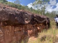 Afloramento de aproximadamente 200 m, da Formação Sergi representando a fase pré-rifte com fácies eólica com arenitos caulinizados demonstrando clima áridoem canais amalgamados entrelaçados sob a facies fluvial com arenitos de retrabalhamento eólico e estratificações cruzadas