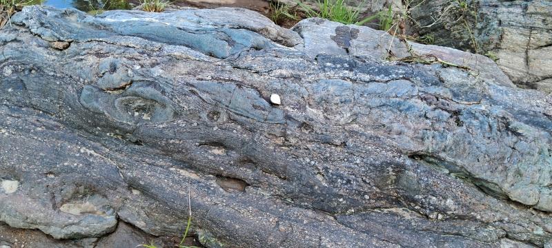 | The Prainha Intrusions represent important records of the magmatic activity that shaped Cacaria's subsurface. These intrusions, known as dikes and sills, are bodies of igneous rock that formed when magma penetrated and crystallized in faults and fractures in the surrounding rocks. The site contains both basaltic intrusions, associated with continental opening and the ascent of mafic magmas from the mantle, and pegmatite intrusions, which result from the differentiation and fractional crystallization of volatile-rich granitic magmas. These processes produced rocks with large crystals and valuable minerals such as tourmaline, beryl, and topaz, making the site a remarkable example of the Earth's internal dynamics and the complexity of the igneous formations in the Cacaria region. |
